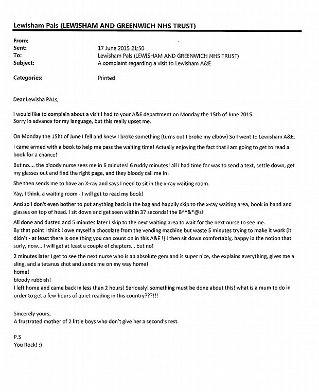 Subject: A complaint regarding a visit to Lewisham A& E (Một lời phàn nàn liên quan đến Phòng Cấp Cứu của Bệnh Viện Lewisham)