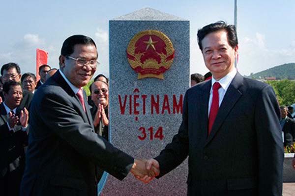 Thủ tướng Samdech Hunsen (Campuchia) và Thủ tướng Nguyễn Tấn Dũng tại lễ khánh thành cột mốc 314 ngày 24/06/2012