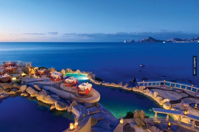 Khu nghỉ mát này trải dài hơn 200 mét bên bờ biển dọc theo khung cảnh tuyệt đẹp