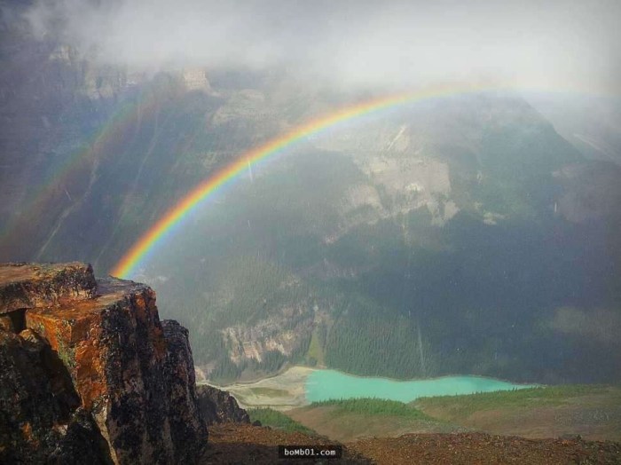 Cầu vồng trên hồ Louise – Alberta, Canada