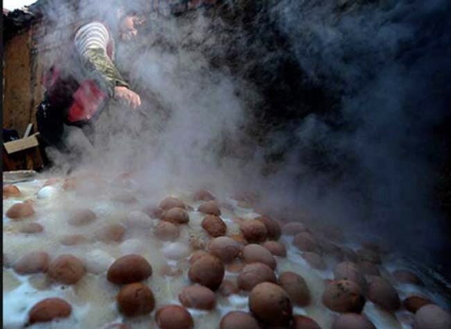 Trứng luộc bằng nước tiểu hài đồng (Trung Quốc). Trứng được luộc bằng nước tiểu bé trai là một món ăn truyền thống ở nhiều vùng ở Trung Quốc. Cứ đến mùa xuân, nước tiểu của những bé trai dưới 10 tuổi sẽ được thu thập và dùng cho việc luộc trứng. Người ta tin rằng những quả trứng đặc biệt này sẽ tăng cường việc lưu thông máu và phục hồi năng lượng trong cơ thể.
