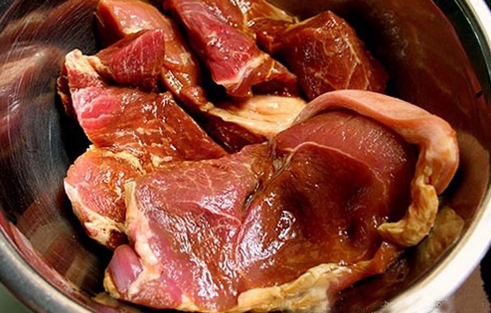 – Thịt lợn mua về rửa sạch, kĩ, cạo sạch phần dơ trên lớp da, xắt thành khúc dài.