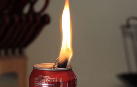 Dùng dầu oliu đổ vào khoảng nửa lon cocacola, lon bia…. dùng một cái khăn giấy cuộn lại để làm bấc đèn và đặt nó vào miệng lon. Tất nhiên bên trong phải chạm dầu. Nó có thể giúp bạn thắp sáng căn phòng trong vài giờ
