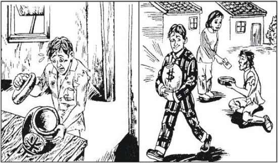 Trong thôn này có một gia đình rất giàu, mọi người thường gọi là “Tiền viên ngoại”. Ở cách nhà họ khoảng hai dặm có một gia đình nông dân họ Lý, mọi người thường gọi là “Lý lão nhị”. Lý lão nhị là người biết làm một chút các công việc xây dựng, cho nên ông thường xuyên đến nhà Tiền viên ngoại để làm các việc đó cho gia đình này. Mỗi lần Lý lão nhị đến làm việc nhà Tiền viên ngoại, Tiền gia đều trả cho ông không ít tiền công. Bởi vì hai nhà thường xuyên qua lại nên Tiền gia coi Lý lão nhị là Lý đệ (em trai), còn Lý lão nhị gọi Tiền gia là Tiền đại ca (anh trai).