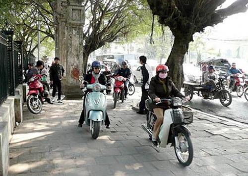 Vỉa hè theo quy định là dành cho người đi bộ, nhưng lúc kẹt xe hoặc khi bận việc nhiều người vẫn chọn chạy xe lên vỉa hè để “thoát hiểm”. Tệ hơn là khi đi xe trên khu vực này mà điều khiển phương tiện phóng như bay, thậm chí là bấm còi inh ỏi khi thấy khách bộ hành. Đã có không hiếm trường hợp vì phóng nhanh mà va quẹt, rồi gây gỗ vì bấm còi làm một số người khó chịu vì giật mình.