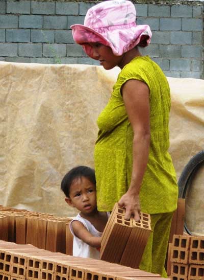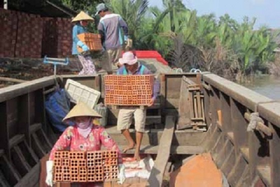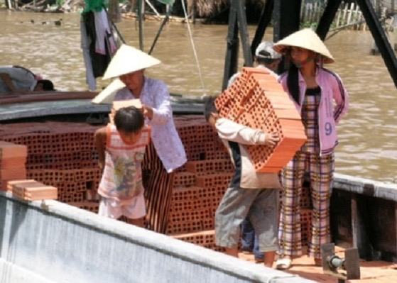 “Mỗi ngày con cõng được 2.000 viên gạch, mỗi lần cõng 20-40 viên (mỗi viên nặng chừng 0,8kg – PV). Con đem về cho má hơn 20.000 đồng mỗi ngày…”, Hậu Em (10 tuổi, ấp Mỹ Thạnh, xã Nhơn Mỹ, huyện Chợ Mới, An Giang) nói trên báo Tuổi Trẻ. (Ảnh: vnexpress.net)