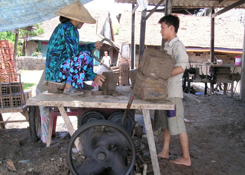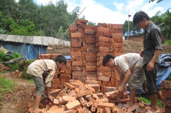 Ở đây, lao động trẻ em cũng đồng như người lớn. Người lớn 32 viên một khối. Trẻ con lưng nhỏ, tay ngắn thì 24-28 viên. (Ảnh: nhandan.com.vn)