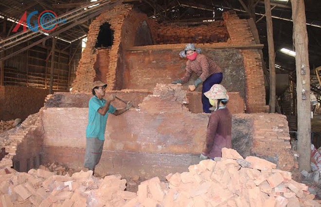 Sinh ra tại vùng đất gạch thị trấn An Châu (Châu Thành, An Giang), người lớn cũng sống không nổi với tiền công nặn đất, chạy tà lệch, chụm lửa… Vì thế, trẻ con cũng phải nai lưng bám lò, bám bụi kiếm tiền phụ cùng gia đình. (Ảnh: baoangiang.com.vn)