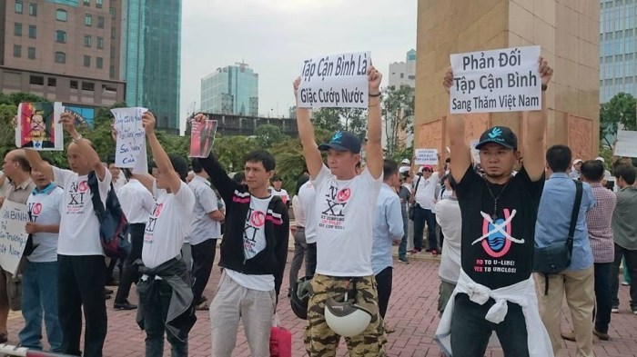 Một số hình ảnh người dân Việt Nam trong nước phản đối Tập Cận Bình đến Việt Nam!! Và công đồng người Việt Nam ở nhiều nước trên thế giới cũng phản đối mạnh mẽ Tập Cân Bình đến Việt Nam. Đấy cũng là điều tất yếu của những người dân Việt Nam yêu nước. Không thể đón tiếp kẻ cướp đất cướp biển, bành trướng bà quyền và gây ra bao cảnh tang thương chết chóc cho hàng ngàn quân và dân Việt Nam ở dọc biên giới phía Bắc năm 1979 .