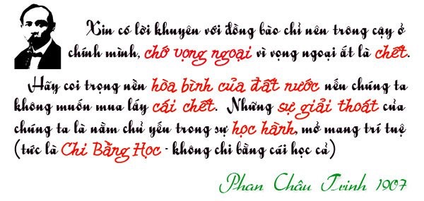 Tuyên ngôn vĩ đại CHI BẰNG HỌC cho tương lai tốt đẹp của dân tộc Việt Nam đã được Phan Châu Trinh phát biểu rõ ràng năm 1907.
