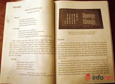 “Chính vì vây, đến thời điểm này, các nhà Hán nôm, cụ thể ở đây là ông Nguyễn Khắc Phi và Nguyễn Đình Chú dịch là: Sông núi nước Nam vua Nam ở/ Vằng vặc sách trời chia xứ sở/ Giặc dữ cớ sao phạm đến đây/ Chúng mày nhất định phải tan vỡ.