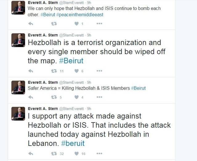 Nghị sĩ Mỹ hả hê trước tin Beirut bị đánh bom kép.