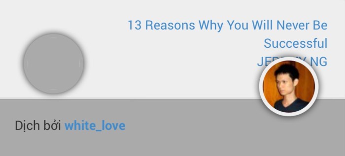 Bạn có biết vì sao tỷ lệ đại thành công lại thấp không? Bởi nó khó khinh khủng. Nhưng đồng thời những thay đổi bạn tạo ra để giúp bạn gia tăng tỷ lệ ấy theo cấp số nhân lại rất đơn giản. Đơn giản không có nghĩa là dễ dàng. Tất cả phụ thuộc vào ý chí của bạn. Bạn đã sẵn sàng tạo ra sự thay đổi lớn trong cuộc đời chưa? Hãy bắt đầu thôi. Sau đây là 13 lí do vì sao bạn chưa từng thành công trong đời.