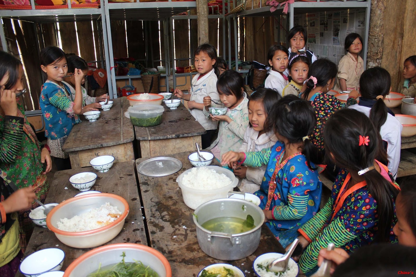 Trường cách thị trấn hàng chục km, đồ ăn của lớp học quanh năm chỉ có cơm với một ít rau rừng hái quanh khu vực lớp học. Cũng có khi cuối tuần, thầy cô về thị trấn hay tranh thủ về thăm nhà vào cuối tháng, thì bữa ăn được cải thiện có thêm ít thịt, cá khô.