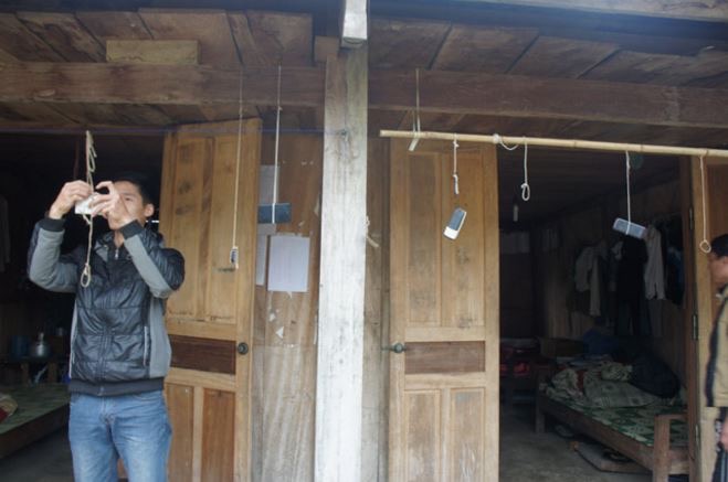 Ở xứ sở của bao cái “không” này, điện thoại là thứ duy nhất có thể kết nối các thầy cô với thế giới bên ngoài. Nhưng sóng điện thoại lúc được, lúc rớt nên vào giờ rảnh nào đó trong ngày, thầy cô lại leo lên mô đất cao nhất hoặc treo máy điện thoại cố định lên cao và chờ một lúc để “đón” sóng.