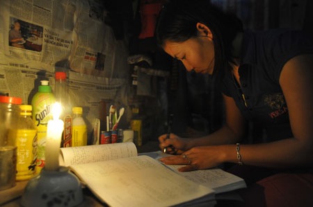 Ở nơi không có điện, ánh nến bên những trang giáo án là những người bạn giúp các cô nối dài thêm tình yêu thương học trò. (Ảnh: danviet.vn)