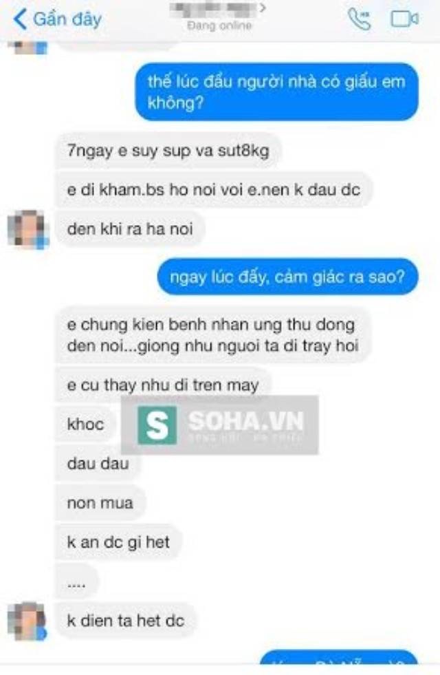 Biết tin bệnh tình em ở Đà Nẵng, sếp em gọi điện vào, bà bảo rằng “bác sĩ chỉ phán chung chung thôi, em không thể bị bệnh đó được, em hiền lành tử tế như thế…”.