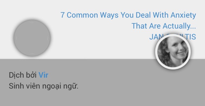Bạn có quen ai hoàn hảo không? Không? Những người cho dù thành công hay cùng quẫn đều phải vật lộn với sự lo lắng, nhưng họ có cùng một điểm chung là hiếm khi thừa nhận rằng họ gặp phải vấn đề. Gặp rắc rối không có nghĩa là bạn không thể thành công, nó đơn giản chỉ là gặp rắc rối mà thôi. Hít thở thật sâu, nhận thức được việc bạn là một con người và rằng nỗi lo lắng chỉ là một thử thách trước mắt, rồi tiếp tục tiến lên.