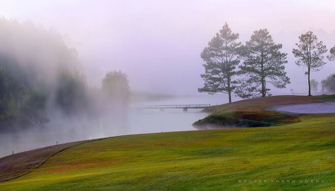 Vào những ngày cuối thu, mặt hồ Tuyền Lâm được bao phủ bởi lớp sương mờ ảo khiến du khách có cảm giác như đang được chiêm ngưỡng một bức tranh huyền bí, liêu trai.