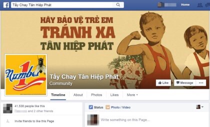 Có cả một fanpage “Tẩy chay Tân Hiệp Phát” được rất nhiều người hưởng ứng trên Facebook.