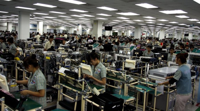 Một góc nhà máy sản xuất điện thoại di động của Samsung ở Bắc Ninh. Công ty này được cho là đãi ngộ công nhân có nhân văn. Ảnh: TL