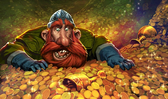 Đi thêm một lúc, bất ngờ thấy một đống gì đó phát sáng làm anh ta chú ý. Vừa nhìn qua thì thấy ngay là đống vàng!