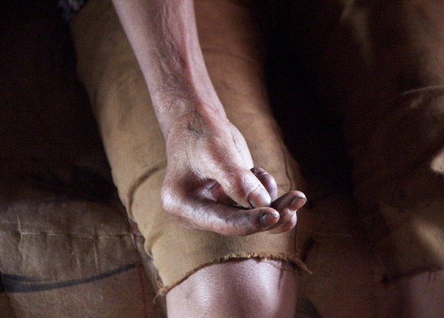 Anh Hải năm nay cũng đã ngoài 40, nhưng khi trò chuyện với tôi anh vẫn xưng em, chắc tại cái cuộc sống khốn khổ của anh đã khiến anh luôn thu mình lại trước mọi người. Mái tóc xù xì lâu ngày chưa được cắt tỉa, khuôn mặt khắc khổ, dáng người lam lũ khổ cực khiến anh già hơn rất nhiều so với cái tuổi 40. Anh bảo anh không có bệnh gì hết, anh khỏe lắm, anh vẫn đi làm để lo cho hai đứa được, nhưng khi hỏi anh có bao giờ đi khám bệnh chưa thì anh chỉ cúi đầu im lặng.