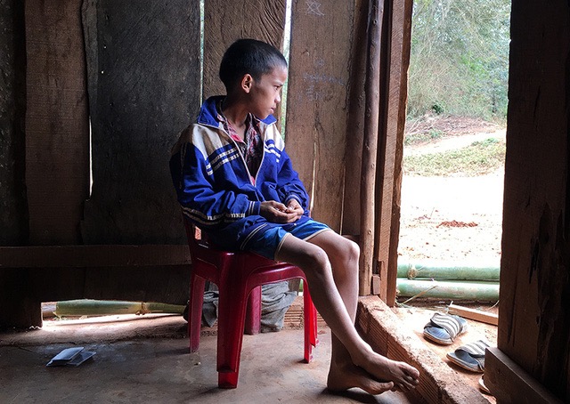 Nhìn cậu bé Hoàng người gầy tong teo, đầu to, đôi mắt sâu và đượm buồn, trời lạnh nhưng em vẫn chỉ có chiếc quần đùi và đôi chân trần. Anh bảo Hoàng bị suy dinh dưỡng từ trong thai, giờ không có điều kiện chăm sóc nên cháu đau ốm liên miên. “Mỗi lần bệnh tật, nhờ được ai đó chở ra trạm xá để khám theo bảo hiểm hộ nghèo thì còn có thuốc uống chứ không thì cũng chỉ mua tạm thuốc vặt thôi!”, anh Hải nói.