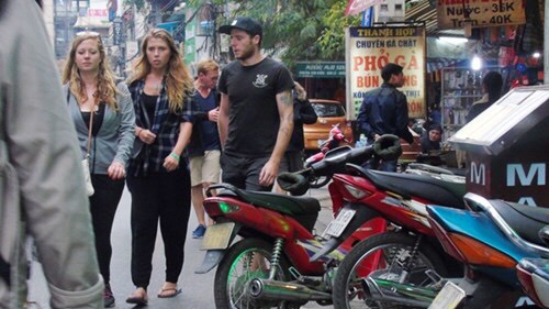 Khách du lịch cũng phải di chuyển dưới lòng đường cùng dòng xe cộ