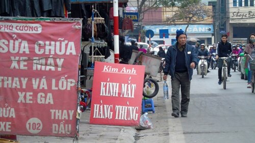 Phố Đào Duy Anh, hàng hoá, biển quảng cáo tràn ra tận lòng đường