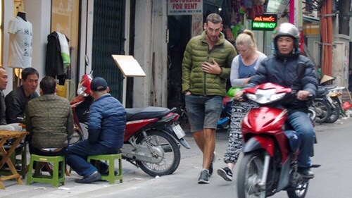 Khách du lịch cũng phải di chuyển dưới lòng đường cùng dòng xe cộ