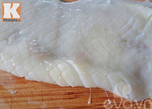 Bước 2: Mực rửa sạch, khứa xéo.