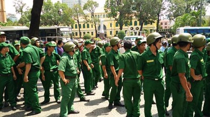 Có một tay thanh niên mặt thường phục, mặt mày hợm hĩnh cứ chĩa máy quay (có lẽ để quay từng gương mặt). Người nào cãi lý, hô hào nhiều thì anh ta cố ý chĩa máy quay như hăm doạ. Có hai phụ nữ do tranh luận cũng như đòi hỏi công lý bị lôi đi. Mọi người đồng lòng chống lại thì bị cảnh sát cơ động khống chế để lôi hai người phụ nữ lên xe cảnh sát đi đâu không rõ.