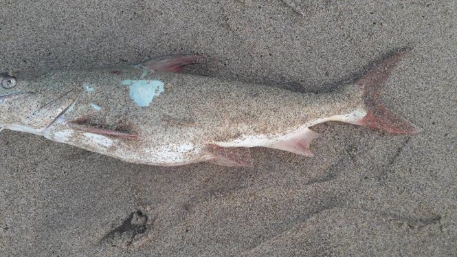 Trong khi tin tức về những người bị ngộ độc do ăn cá phải nhập viện liên tục xuất hiện, thì nhiều người dân ở khu vực Đá Nhảy, xã Thanh Trạch, Bố Trạch, Quảng Bình vớt cá chết bán cho thương lái – Ảnh: Tuổi Trẻ.