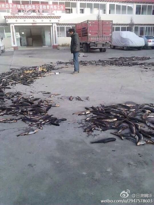 Dân Tây Tạng ở Tứ Xuyên đổ cá chết ra giữa đường để biểu tình… — Trung Cộng thò đến nơi nào, thì cá ở nơi đó bị nhiễm độc. Thực trạng đã quá hiển nhiên, nhưng nhà cầm quyền CSVN vẫn ra sức loay hoay che đậy cho Trung Cộng.