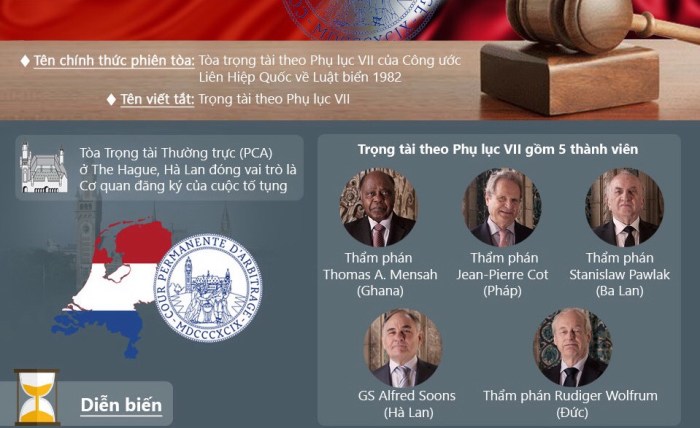Trước thời điểm công bố, trang web của Tòa Trọng tài thường trực (PCA) ở The Hague, Hà Lan (pcacases.com) tổ chức công bố kết quả phán quyết. Trang web này đang trong tình trạng không thể truy cập được vì quá tải.