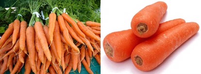 Trung Quốc (bên phải): Không cùi, màu cam đậm, tươi sáng. Kích thước to, suôn và các củ khá đều. Lá thường được tỉa gọn hay cắt sạch.