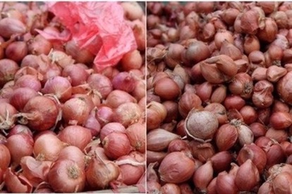 Hành Trung Quốc (bên trái): Củ to, chỉ có 1 tép, vỏ mỏng, không thơm.