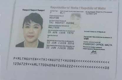 Ảnh chụp hộ chiếu ghi rõ Quốc tịch Malta của bà Nguyễn Thị Nguyệt Hường, được cấp ngày 22/6/2016 do Văn phòng Hộ chiếu Malta cấp. (Nguồn: FB Tuyen Nguyen Chung)