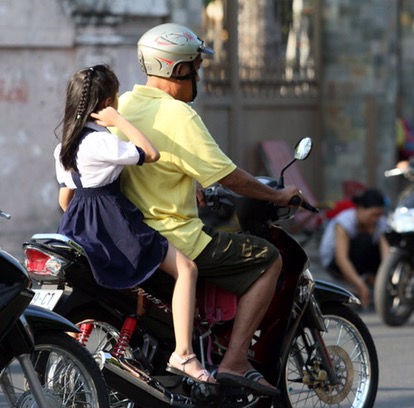 Chở trẻ em trên xe máy – Ảnh: N.C.T.