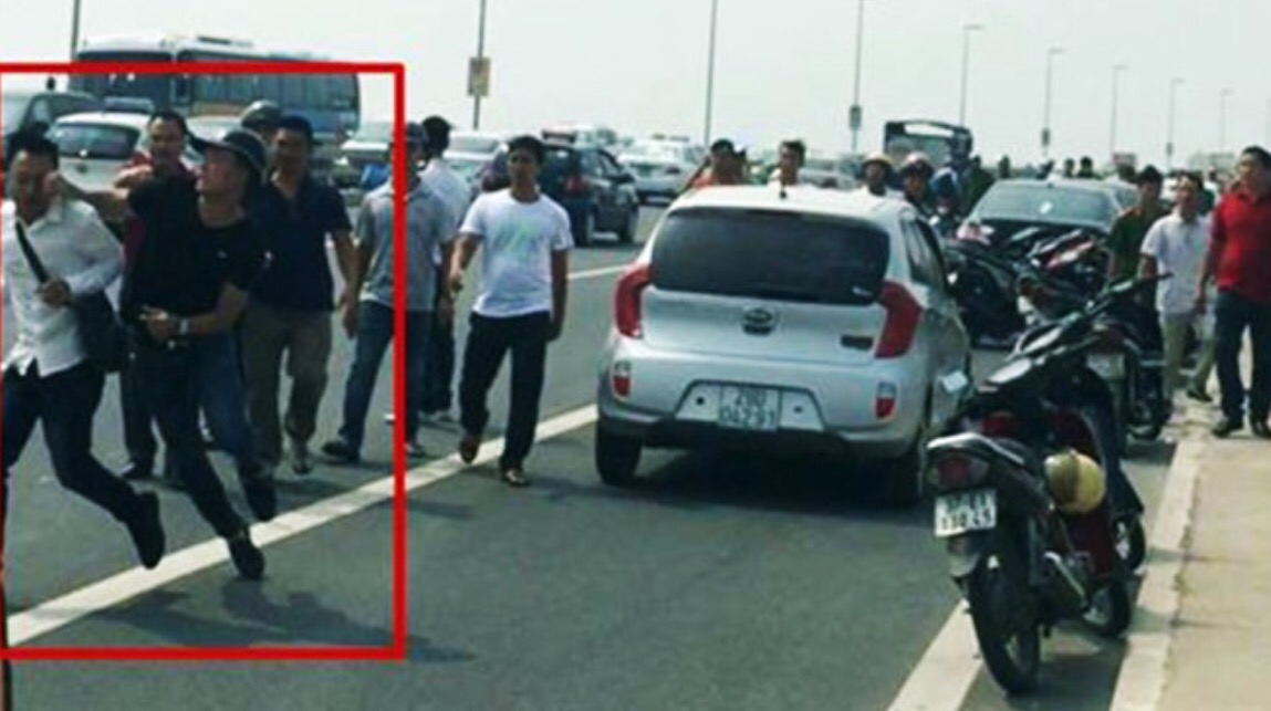 Hình ảnh phóng viên Quang Thế của Báo Tuổi Trẻ bị “gạt tay vào má”. Ảnh: Minh Chiến