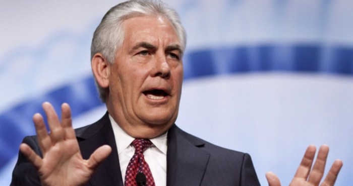 Rex Tillerson, CEO của ExxonMobil, đã có ít nhất 5 chuyến công tác đến Trung Quốc kể từ năm 2008. Lần gần đây nhất là vào tháng 7/2016, khi đó ông đã gặp Wang Yilin, một đảng viên kỳ cựu của đảng Cộng sản Trung Quốc và là Chủ tịch Tập đoàn Dầu khí Quốc gia Trung Quốc (CNPC).
