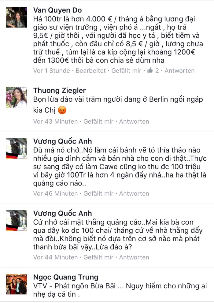 Tôi không hiểu với động cơ gì mà họ lại đưa những thông tin sai với sự thật như vậy, hơn nữa điều đó chỉ làm cho những người có ý định sang Đức làm việc thêm thất vọng và vỡ mộng, gây cho họ tâm lý chán nản vì không đúng với những giấc mơ khi họ bước chân sang đây làm cái công việc cực nhọc, ca kíp đó.