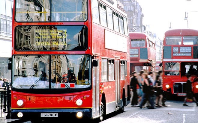 Làn đường dành riêng xe buýt ở London.