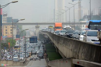 Tắc đường ở đường trên cao Hà Nội.