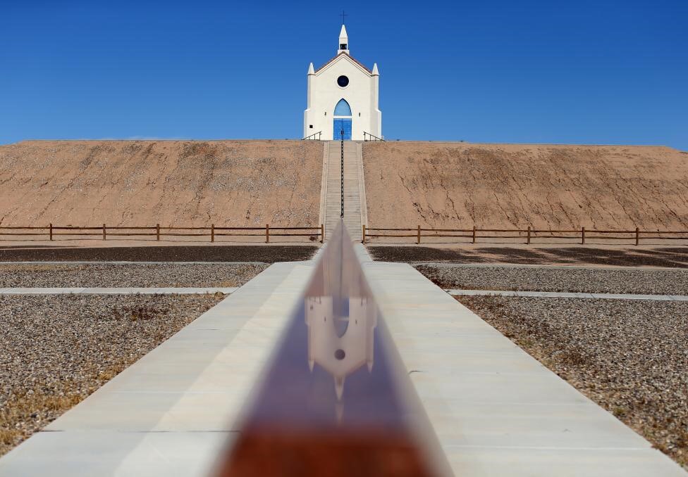 Một nhà thờ Mexico nhìn từ Felicity, bang California, Mỹ.