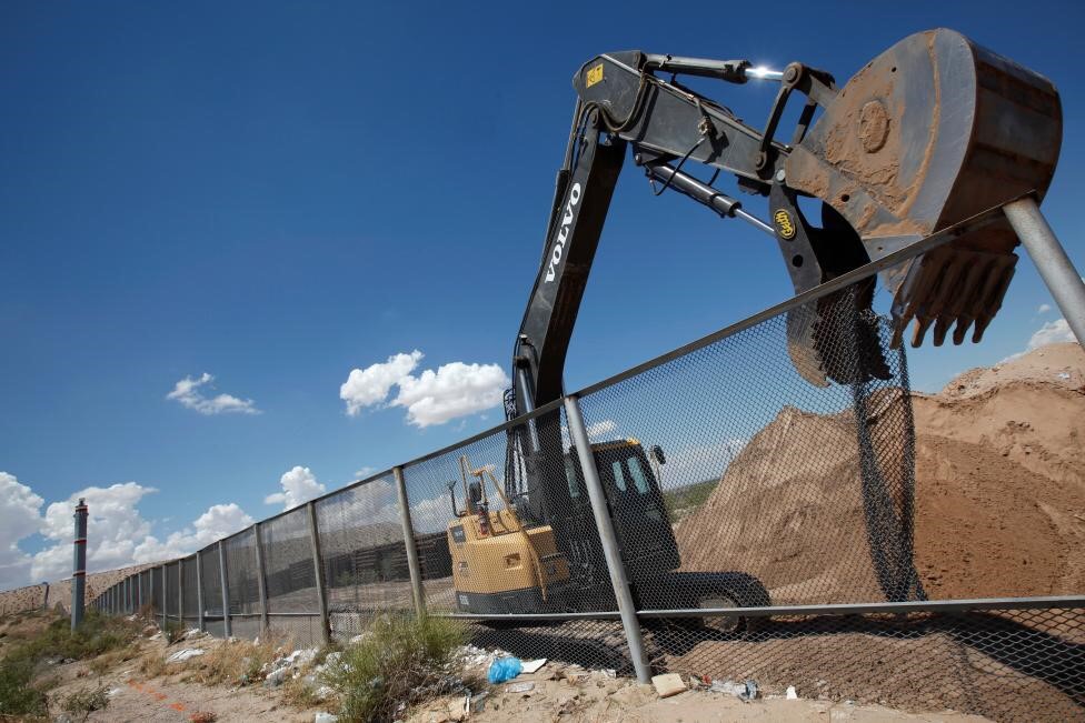 Máy xúc dỡ bỏ hàng rào để thay thế bằng bức tường biên giới Mỹ – Mexico tại công viên Sunland, Mỹ.