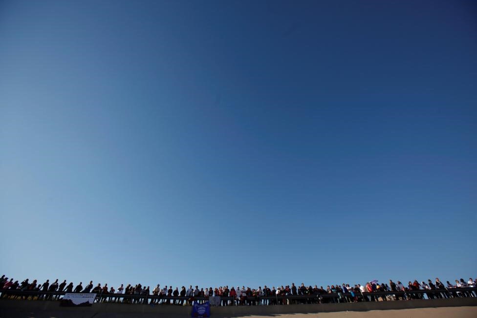 Nhiều người đứng bên phía Mexico xem cảnh đoàn tụ ngắn ngủi của những người xa cách lâu ngày do bị trục xuất hoặc di cư trên bờ sông Rio Bravo (Rio Grande).