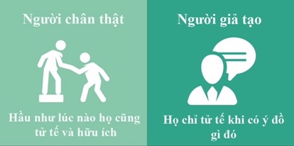 Trong xã hội chúng ta tiếp xúc với tất cả các loại người, vậy làm sao để phân biệt người nào xứng đáng để chúng ta kết bạn? 8 minh họa dưới đây sẽ giúp bạn so sánh thấy sự khác biệt giữa người thật thà và giả tạo, như vậy bạn sẽ có thể tìm ra ai là người bạn thức sự, và ai là người giả tạo để bạn biết đường mà tránh.