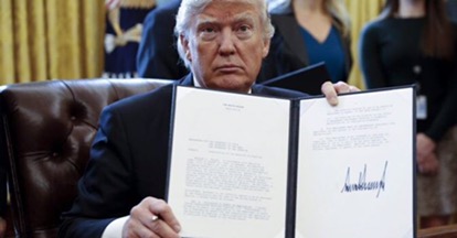 Hành động của Tổng thống Trump trong tuần đầu là một loạt sắc lệnh: xây bức tường biên giới với Mexico, trục xuất những người nhập cư không có giấy tờ, rút khỏi hiệp định thương mại TPP, tiếp tục khai thác dầu xuyên lục địa. Ông cũng họp với một loạt lãnh đạo các công ty để nhắc nhở họ phải sản xuất trong nước để tạo thêm việc làm.